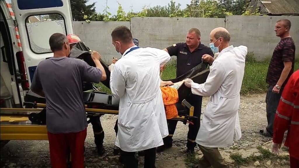 Рятувальники, які прибули на виклик, за допомогою нош транспортували 78-річну постраждалу до карети швидкої допомоги.
