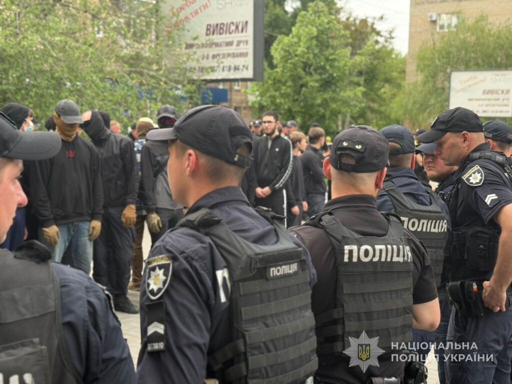 На місце події також прибули десятки правоохоронці. Конфлікт деескалували. Порушень громадського порядку не допущено. Наразі поліцейські перевіряють усіх учасників та встановлюють всі обставини події.