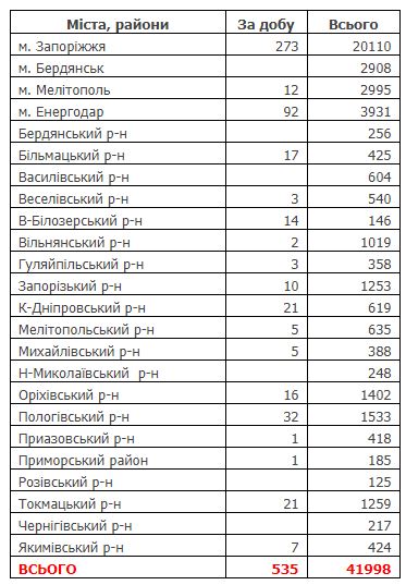 Більше п’яти сотень нових випадків “корони” зареєстрували за добу на території Запорізької області.