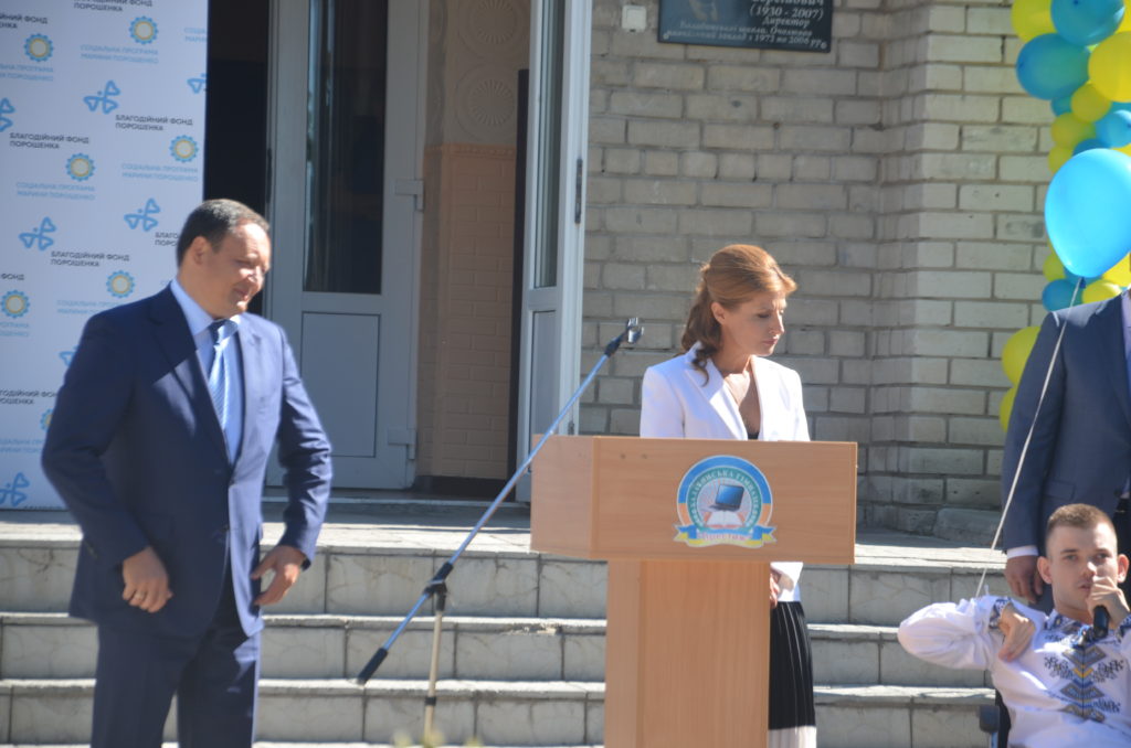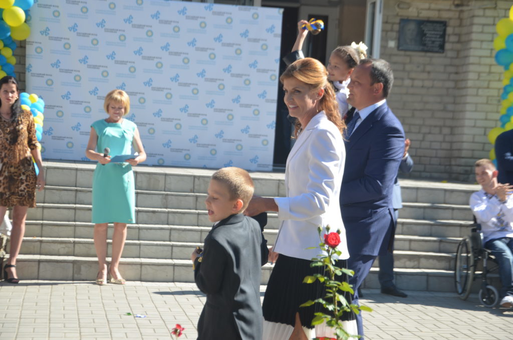 Марина Порошенко уже посетила запорожскую школу № 66. В настоящий момент Первая леди, вместе с председателем областной государственной администрации Константином Брылем, а также председателем областного совета Григорием Самардаком поздравляет малышей в балабинской гимназии “Престиж”.