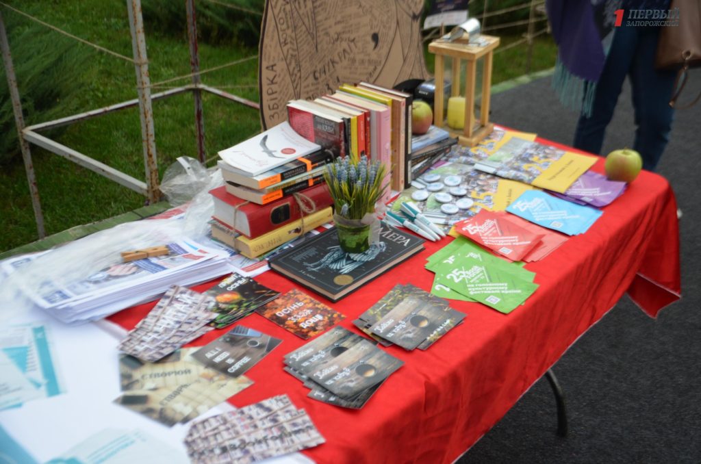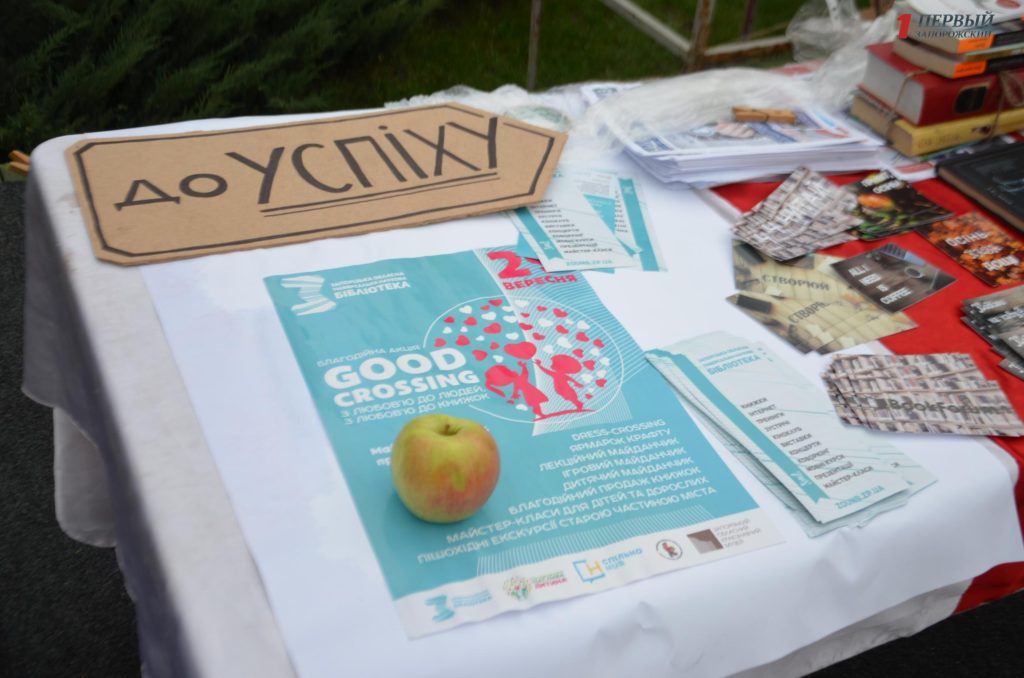 Еще до концерта начали действовать фудкорт и лаунж-зона. На тематической локации “Share your book” (совместный проект представительницы Львовского книжного форума в Запорожье Олеси Лапиковой и работников Запорожской областной универсальной научной библиотеки) проводился сбор книг для благотворительной акции ЗОУНБ “Good Crossing”.
