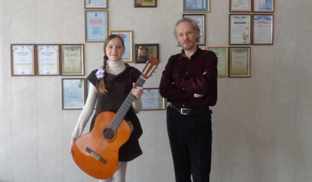 – Лиза Нестерова – очень талантливая девочка, – говорит Елена Алексеева. – Она – лауреат Всеукраинского детско-юношеского фестиваля авторской песни «Солнечный зайчик». У девочки большое будущее. Согласно учебной программы, год назад Лиза стала обучаться игре на гитаре. Девочка из малообеспеченной семьи. Приобрести новый инструмент не представлялось возможным. Мама ей нашла в кладовке старую гитару. И весь год мы только тем и занимались, что без конца ее чинили – то колки у нее выпадали, то дэка рассыхалась.