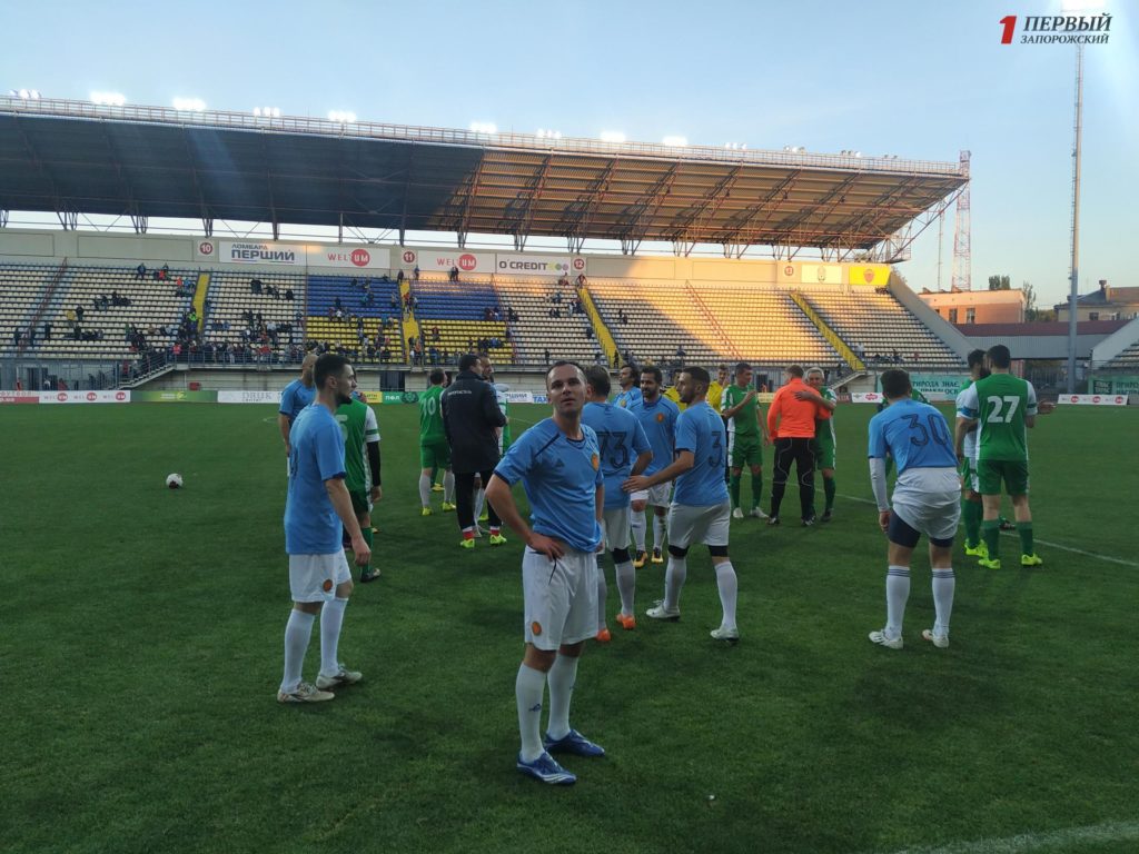 Хозяева боролись за каждый мяч и дважды смогли огорчить голкипера звезд Дмитрия Сукача: отличились Эдуард Багиров и Анатолий Пустоваров (с пенальти). Также в финальные минуты запорожцы “попались” на контратаке и пропустили еще один мяч.