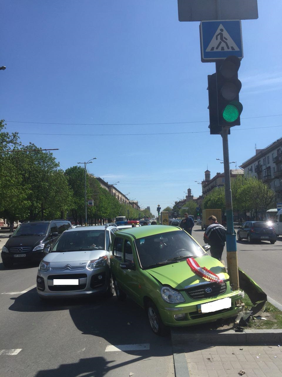 На центральном проспекте Запорожья автомобиль свадебного кортежа попал в ДТП – ФОТО