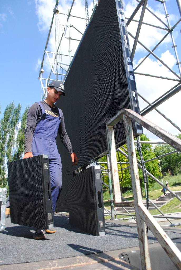 По словам руководителя подрядной организации Андрея Горлача, экран привезли из Киева и он является одним из самых больших в Украине.