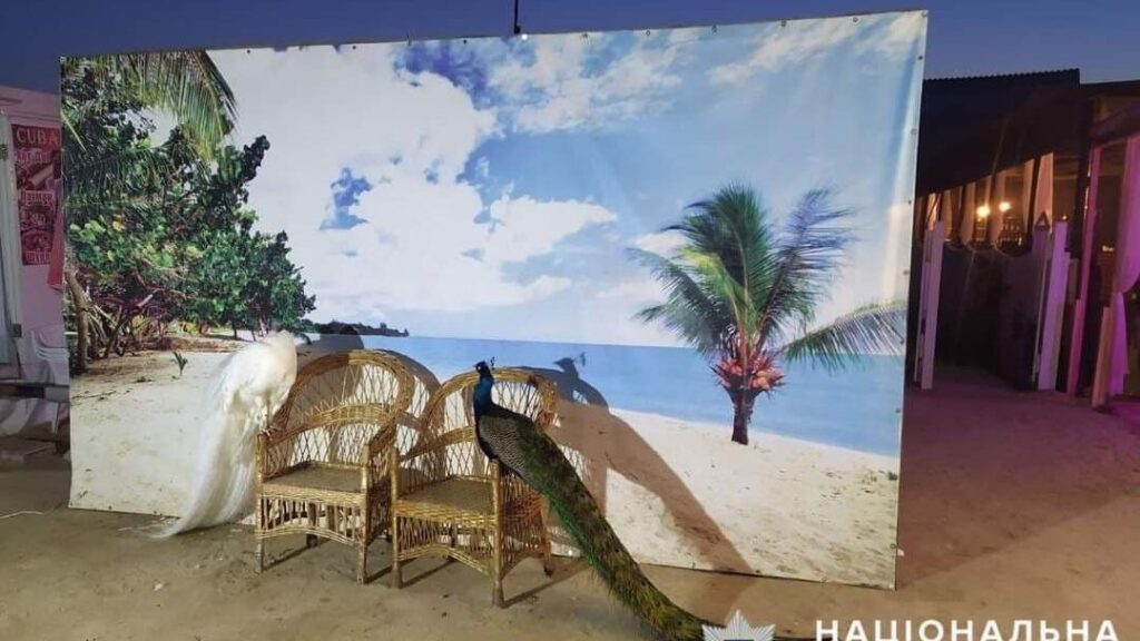 15 липня на одній з баз відпочинку в Кирилівці підприємець з Харківської області 1978 року народження після «фотосесії» посадив двох павичів в картонні коробки та пішов. Це побачили відпочиваючі і розцінили цю ситуацію, як жорстоке поводження з тваринами.