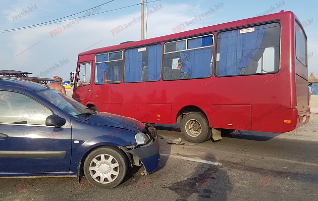 Авария случилась в Бердянске вчера, 25 июля, около 16:00 на улице Макарова. Там столкнулись пассажирский автобус “Богдан” и легковушка “Dacia”.