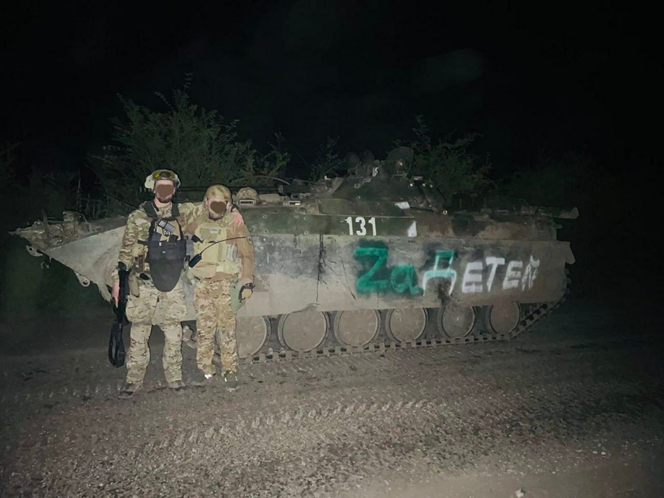 У запорізьких степах бійці київського СЗГ «Азова» знищили окупантів і забрали у них як трофей справну бойову машину, на якій рашисти зробили ганебний напис “ZaДетей”.