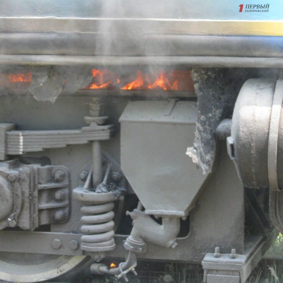 Пожар произошел вчера, 6 мая, на Запорожской детской железной дороге. Во время движения тепловоза один из вагонов загорелся.