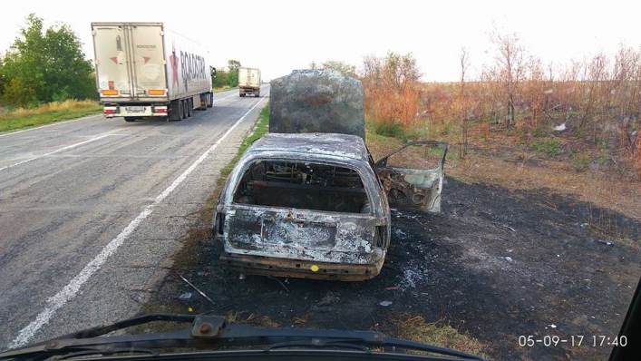 На запорожской трассе дотла сгорел автомобиль - ФОТО
