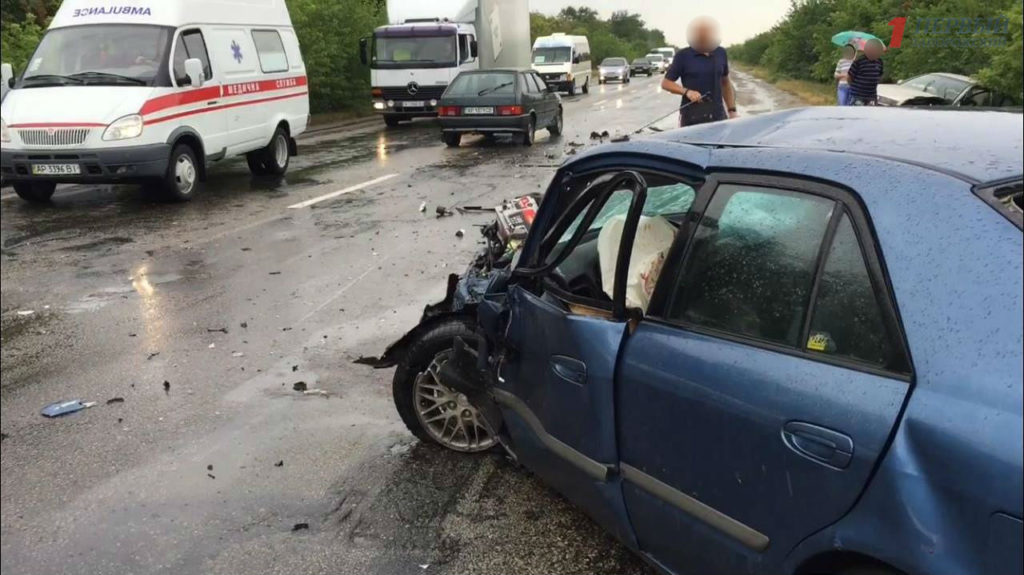 Так, в 20 км от Запорожья, по направлению Васильевки, не поделили дорогу автомобиль на евро номерах с одесситами и авто с донецкими номерами. Со слов водителей, синий автомобиль вышел на обгон, не убедившись в безопасности маневра.
