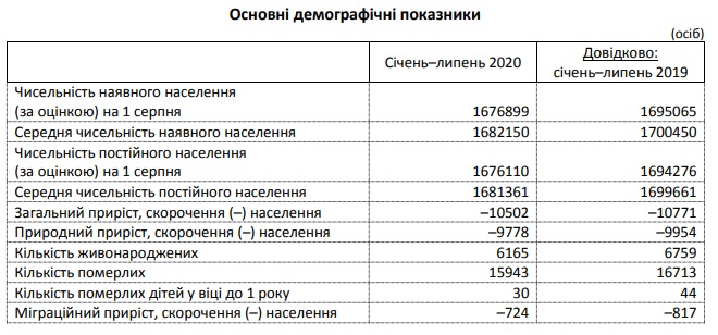 Станом на 1 серпня 2020 року чисельність населення в Запорізькій області була 1 мільйон 676 тисячі осіб. За січень-липень цього року через смертності та міграції населення зменшилося на 10 тисяч 502 осіб. Однак, як і раніше смертність перевищує народжуваність: за січень-липень народилося 6 165 малюків, а померло за цей період 15 943 людини. Також, якщо порівняти з цим періодом минулого року, то смертність у 2020 році зменшилася на 717 осіб, а в 2019 році було 16 713 смертей.