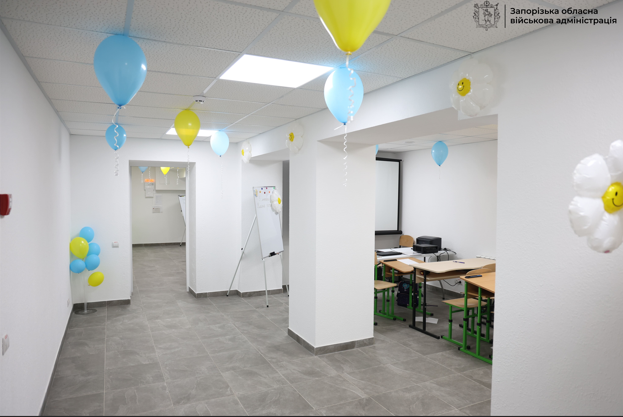 У Запоріжжі учні релокованої школи з Чернігівської громади Бердянського району розпочали навчання у змішаному форматі. Уроки проходить у спеціально облаштованому укритті.