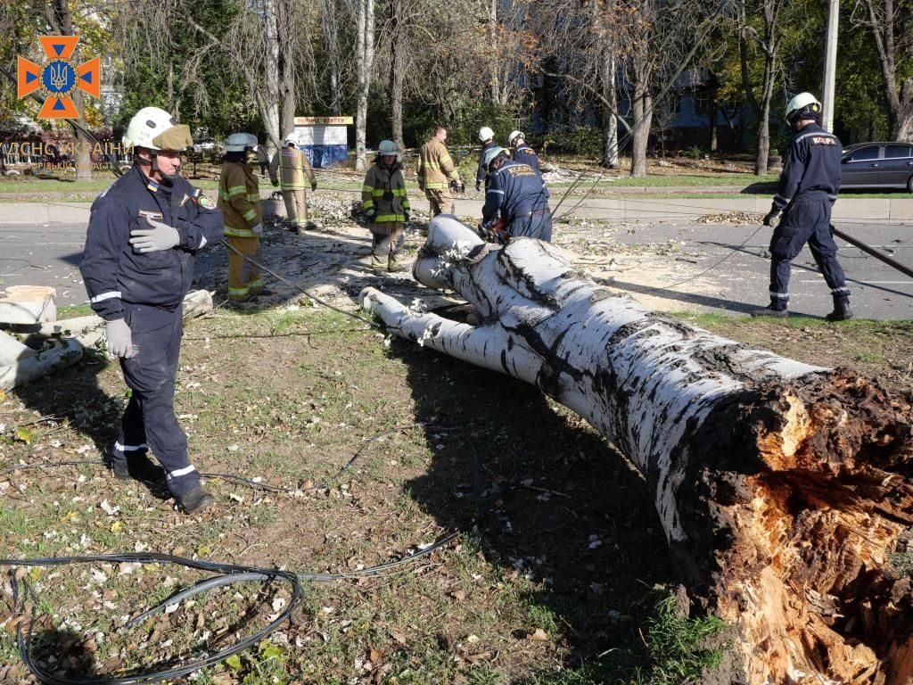Співробітники Служби порятунку розпиляли дерево та прибрали з дороги. Також на місці події працювала міська комунальна аварійно-рятувальна служба. Від ГУ ДСНС залучалось 5 рятувальники та одне спецавто.