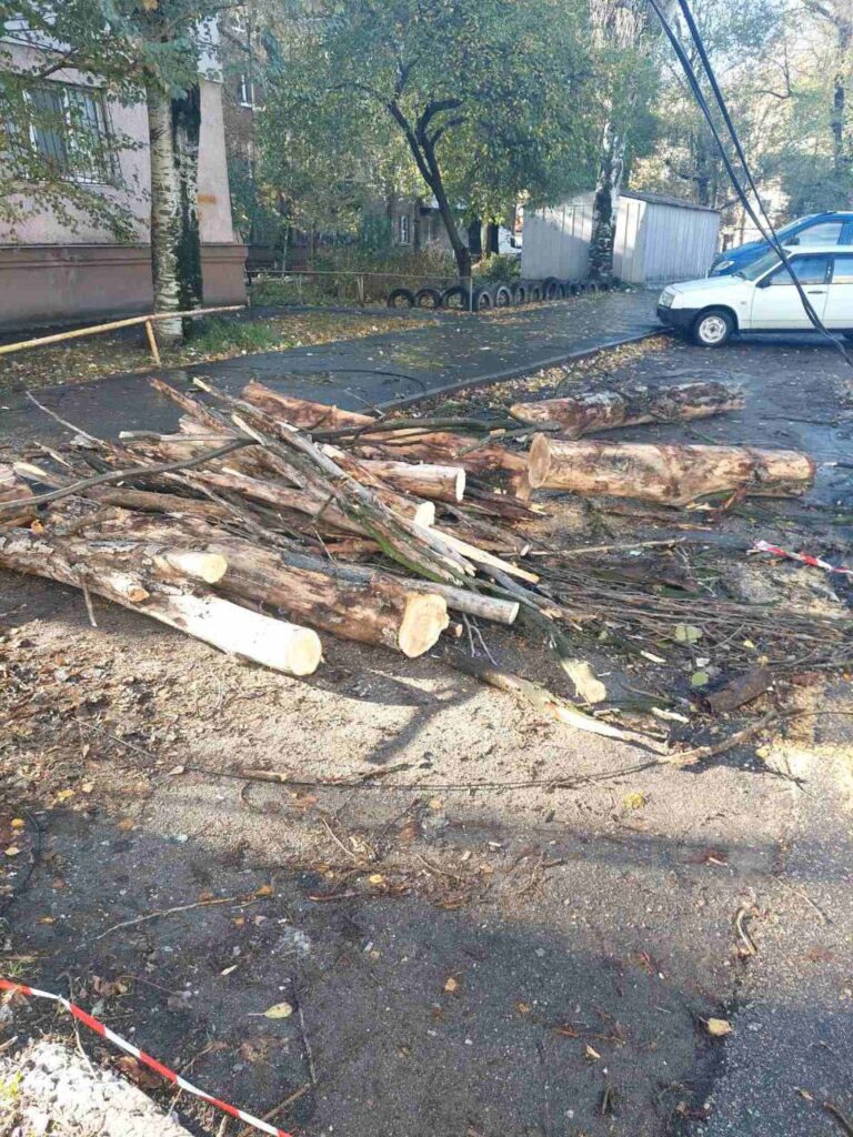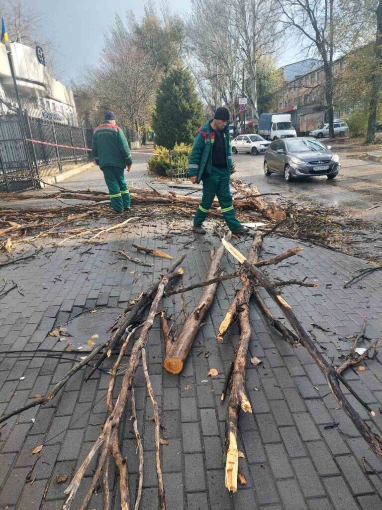 Фахівці спеціальної воєнізованої аварійно-рятувальної служби, міської аварійної служби та «Зеленбуду» розпилюють і прибирають дерева. У процесі також заділи техніку «Міських теплових мереж» та «Водоканалу». Виведено додаткові бригади.