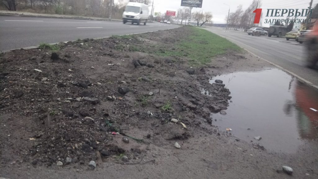 Первое, что бросается в глаза сейчас на Набережной – это перерытая зеленая зона, которая смешалась с остатками бортового камня и грязью, после масштабного ремонта дорог турками. Хотя по условиям тендера здесь должен был быть зеленый газон.