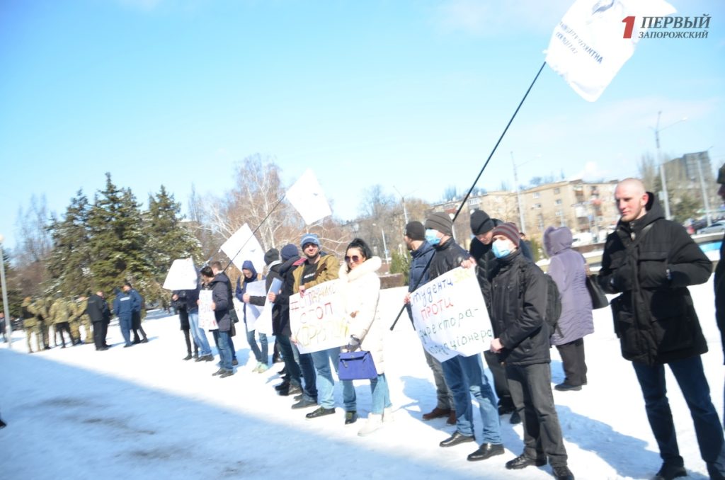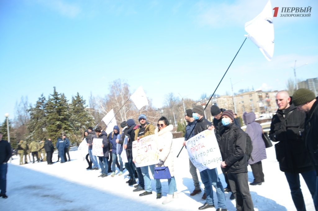 Сегодня, 22 марта, перед областным советом прошел малочисленный митинг за увольнение директора «Запорожского авиационного колледжа имени А. Г. Ивченко».
