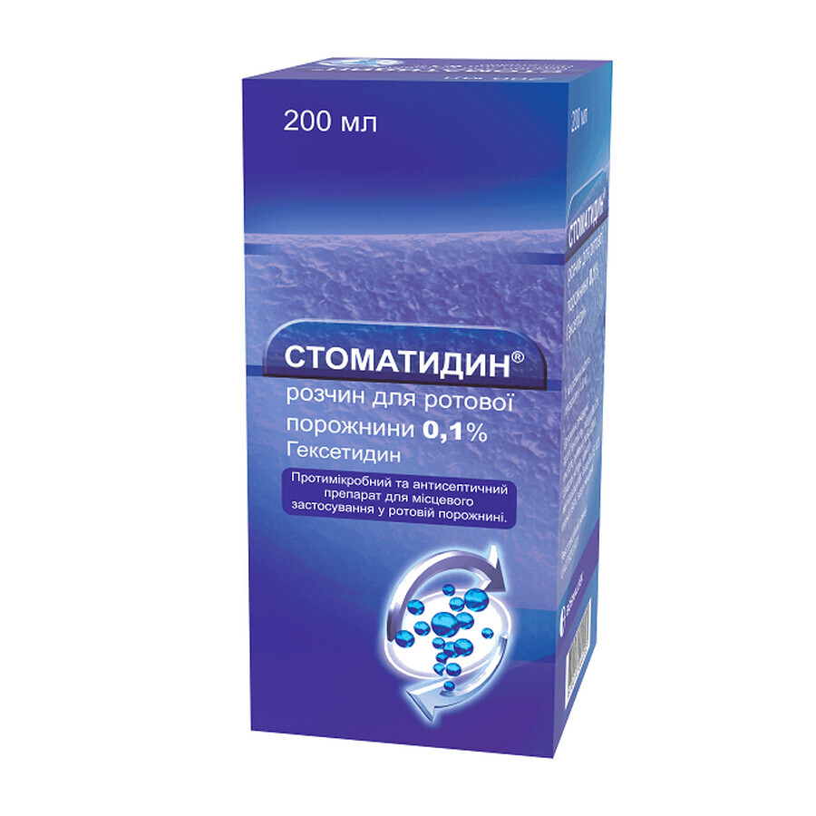 Розчин Стоматидин містить гексектидин – антисептик широкого спектру, активний проти бактерій, грибів та деяких вірусів. За даними офіційного сайту Стоматидин®, засіб зменшує набряк слизової оболонки, полегшує ковтання і сприяє очищенню мигдалин. Для пацієнтів старше шести років рекомендується полоскання 15 мл нерозбавленого розчину протягом 30 секунд двічі-тричі на день після їди курсом сім днів.