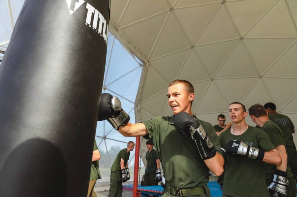 Протягом двох тижнів підлітки з окупованих територій проходять курс військово-прикладної підготовки: опановують стрільбу, тактичні й інженерні навички, військову топографію, тактичну медицину, роботу з дронами, а також навчання з виявлення та знешкодження мін. Живуть у наметах, складають іспити за стандартами російської армії та беруть участь у стройових тренуваннях.