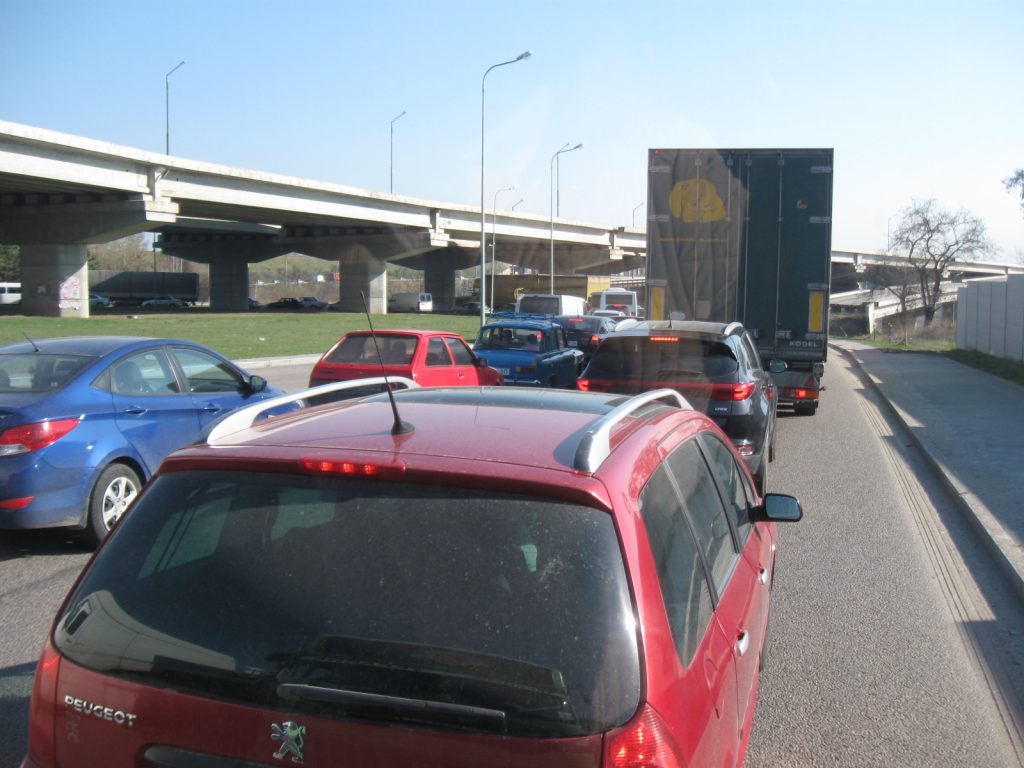 Сегодня, 4 апреля, утром перед мостом Преображенского образовалась пробка.