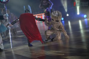 Сама постановка действительно уникальна. В основу сюжета положено вечное противостояние добра и зла. Однако, совместно с традиционными новогодними персонажами – Дедом Морозом, Зимушкой, в сюжете появились и современные персонажи из вселенной Marvel, а именно ТОР, Локки, Грув и другие герои «Мстителей». Саму сказку разбавляли масштабные хореографические постановки с акробатами, невероятными костюмами и детским вокалом.