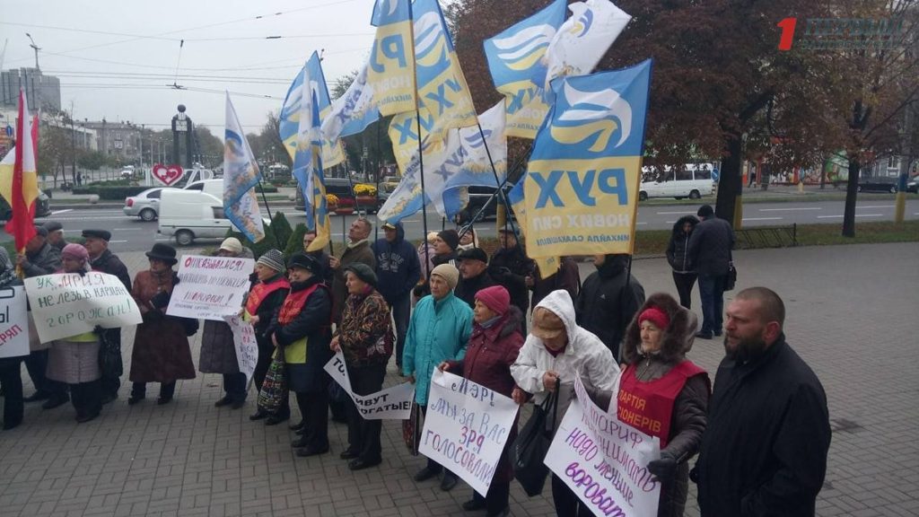Сегодня, 25 октября, перед сессией Запорожского городского совета собрались около трех десятков запорожцев с флагами “Рух нових Сил” и “Партии пенсионеров Украины”, которые выразили свое недовольство новыми тарифами на обслуживание дома.