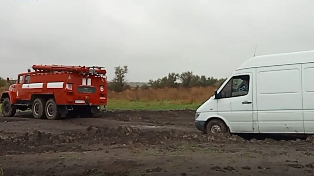 Вчора, 27 жовтня, рятувальники продовжили допомагати людям, які внаслідок негоди опинилися у пастці на розмитій об’їзній ґрунтовій «дорозі життя» у селі Кам’янське Василівського району.
