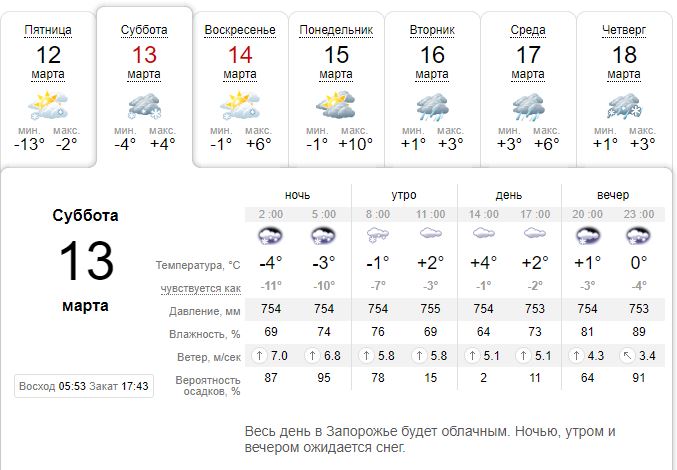 У неділю, 14 березня, вдень температура за вікном складатиме +6 градусів тепла.