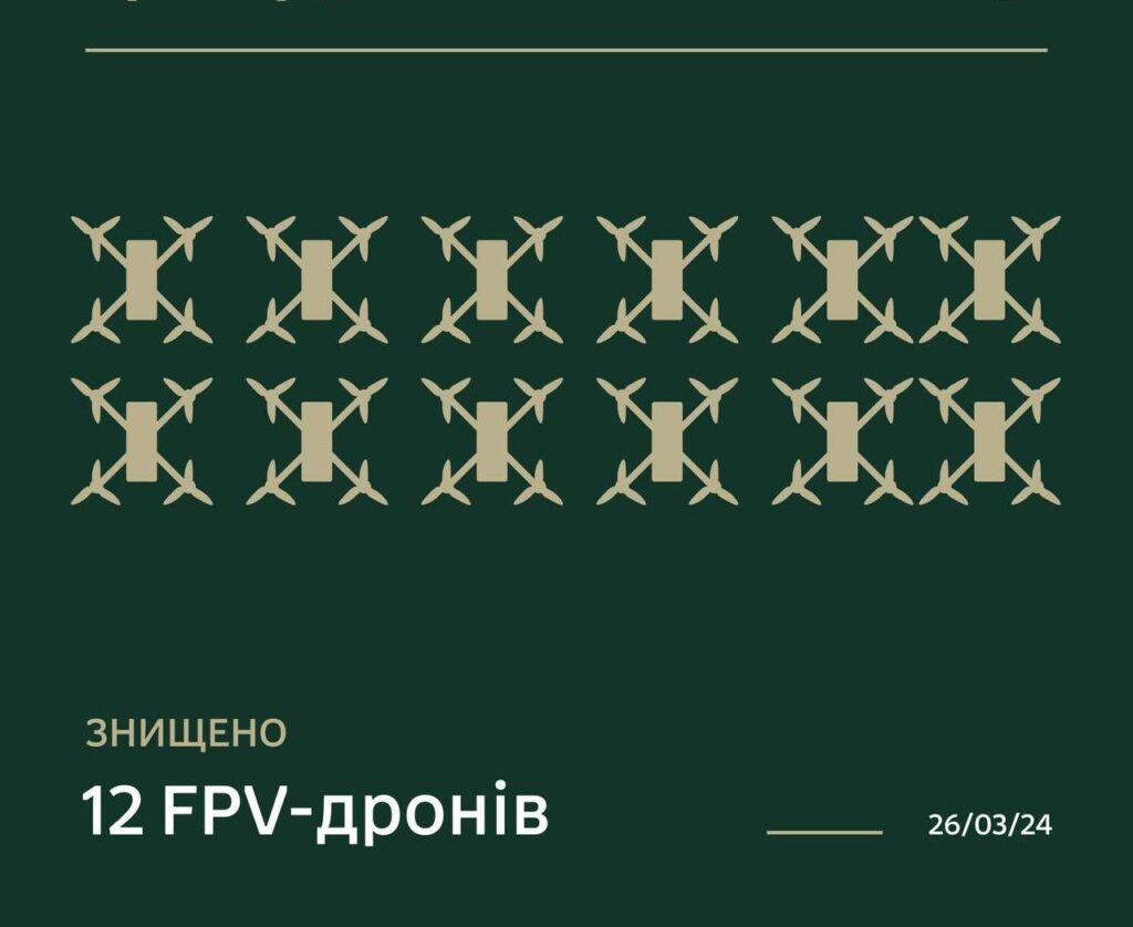 Прикордонники знищили дюжину ворожих FPV-дронів на Запорізькому напрямку.