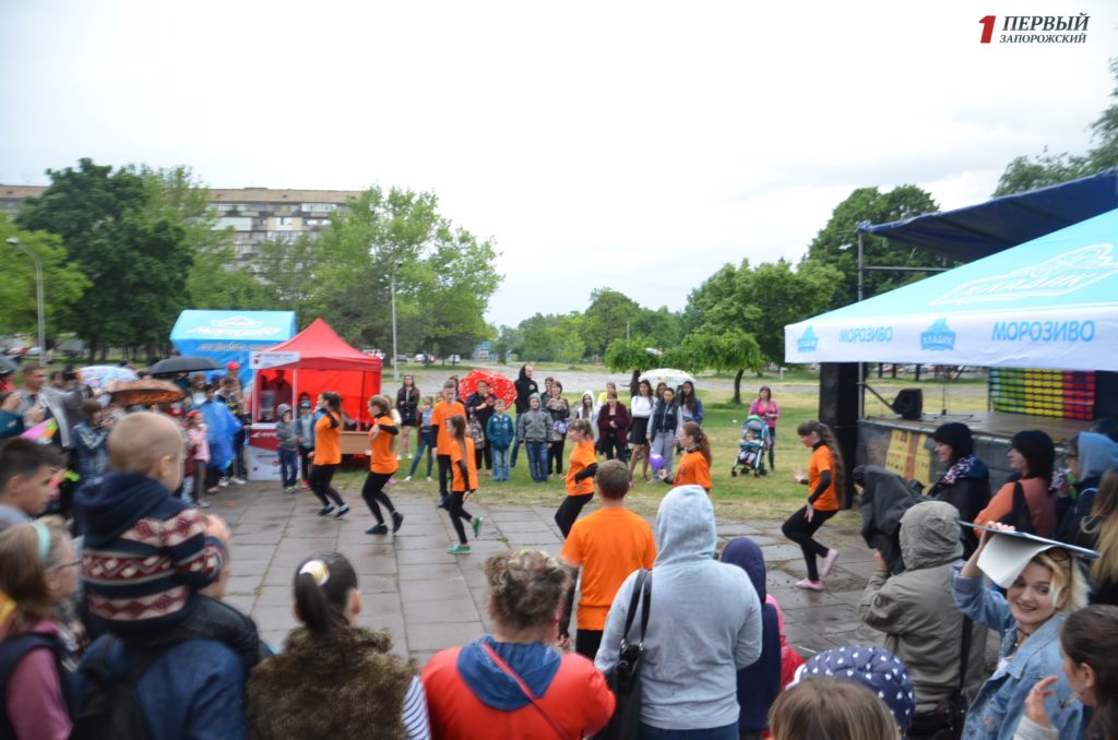 Несмотря на дождь и пасмурную погоду, на мероприятии собрались более сотни запорожцев. Детишки в компании с аниматорами играли, рисовали аквагрим, соревновались в конкурсах и многое другое.