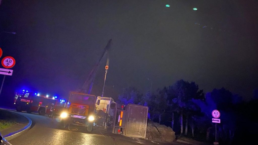 Інцидент стався о пів на десяту вечора. Як розповідають патрульні, водій DAF XF 95 порушив п.2.3 б;10.1;12.1 ПДР, через що його транспортний засіб перекинувся.