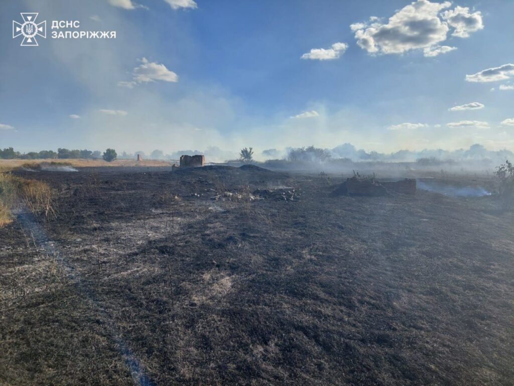 Палали гектари трави та житлові споруди: рятувальники показали наслідки ворожих ударів по Запорізькій області, — ФОТО