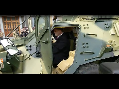 Президент вручил военным 92-й бригады сертификаты соответствия на 16 БТР-4 и несколько десятков минометов «Молот», которые производит столичный завод «Маяк». Осмотрев технику, Петр Алексеевич сел за руль одного из БТР.