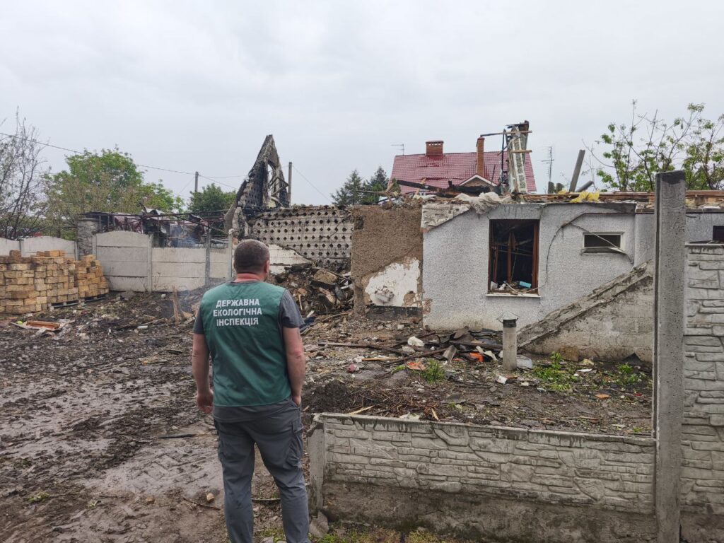 Екоінспектори провели виїзне обстеження постраждалої території у Комунарському районі Запоріжжя, яка зазнала пошкоджень внаслідок ворожої атаки вночі на 7 травня.