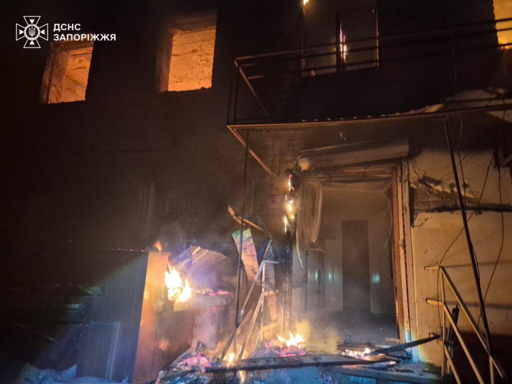Після російських обстрілів у Запорізькій області палали квартири, адмінбудівля та склад із насінням, — ФОТО