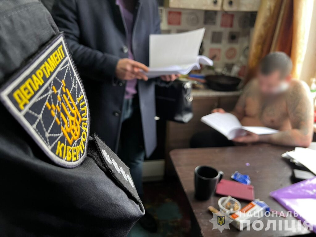 Під час обшуку у нього вилучили шість мобільних телефонів, п’ять банківських карток, планшет та чорнові записи. Чоловіку повідомили про підозру за ч. 2, 4 ст. 190 (Шахрайство) Кримінального кодексу України. Він знаходиться під вартою.