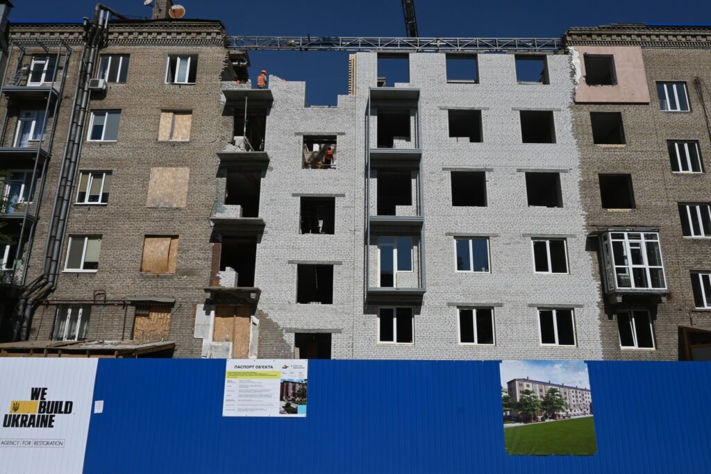 «Муруємо стіни 5-го поверху та продовжуємо влаштування сходових маршів та майданчиків. Утеплюємо перекриття горища та ремонтуємо покрівлю. Влаштовуємо опалювальні, водопостачальні та каналізаційні мережі у квартирах. Встановлюємо балкони та вікна у квартирах та на сходових клітинах», — йдеться в повідомленні.