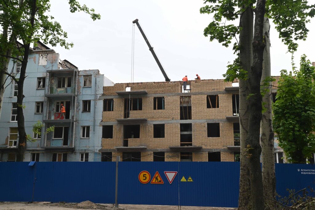 У Запоріжжі триває відбудова шести багатоповерхових будинків, які були зруйновані внаслідок російських ударів по обласному центру. Роботи виконуються за кошти Фонду ліквідації наслідків збройної агресії РФ.