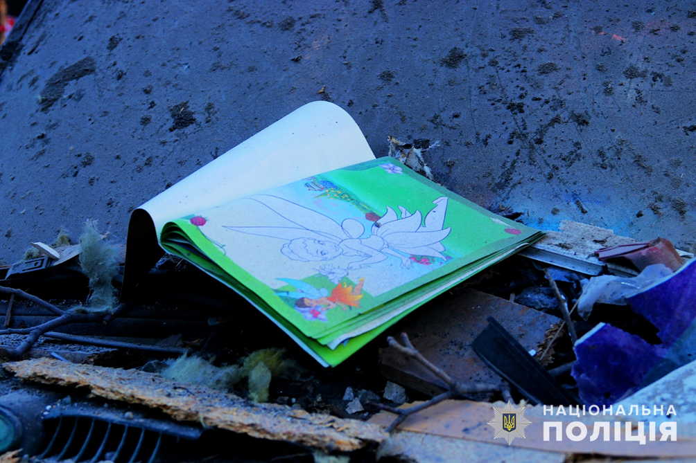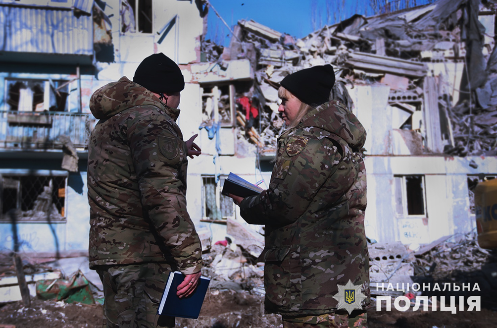 На місці події тривають рятувально-пошукові роботи. Поліцейські продовжують збирати речові докази військової агресії росіян.