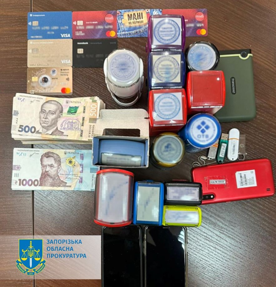 У квартирі фігуранта правоохоронці провели обшук та вилучили банківські картки, мобільні телефони, комп’ютерну техніку, чисті бланки різних документів, штампи та печатки невідомого походження.