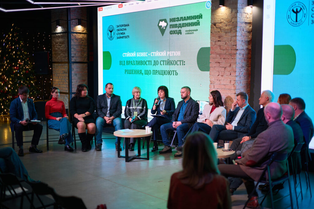 Соціальний вимір економічної стійкості окреслила директорка Запорізького обласного центру зайнятості Зінаїда Бойко. За рік послугами служби зайнятості скористалися понад 17 тисяч людей, з яких 5,5 тисячі були працевлаштовані, а понад 2,6 тисячі пройшли професійне навчання. Загалом за державними програмами підтримки в області створено понад 780 робочих місць, а обсяг залучених коштів перевищив 189 млн грн.