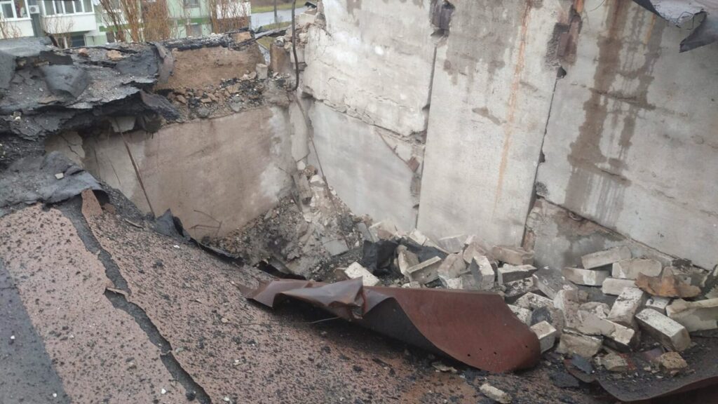 Внаслідок ворожого обстрілу відбулося часткове руйнування перекриття п’ятиповерхового житлового будинку без послідуючого горіння.