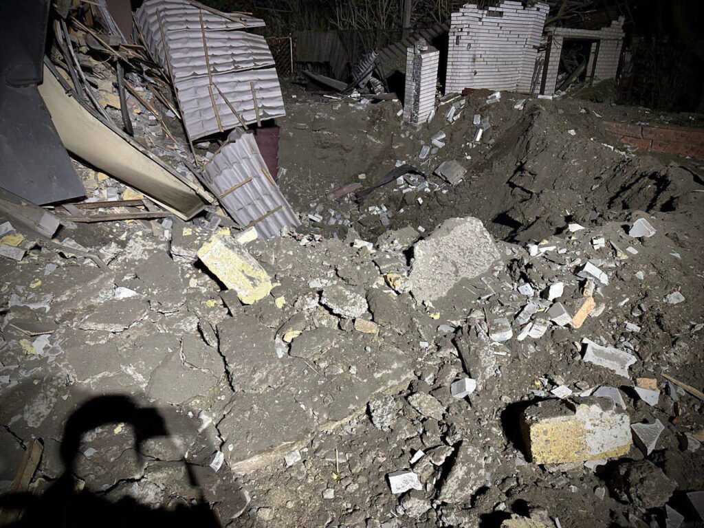 Володимир Грянистий, виконуючий обов’язки керівника Дніпровської районної адміністрації розповів, що один ворожий снаряд потрапив біля житлового будинку, зруйнувавши його, а також пошкодивши два сусідні гаражі.