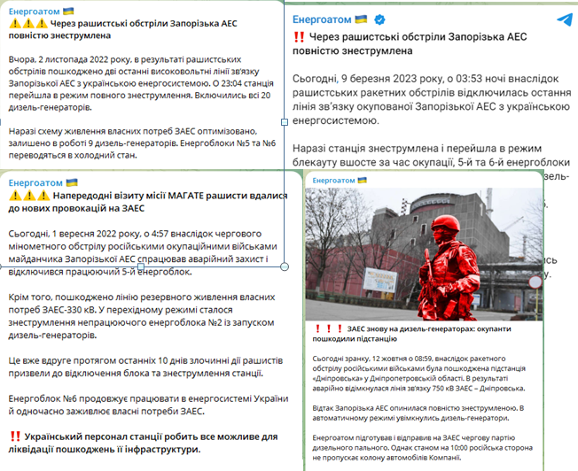 Спростування: Державний оператор усіх українських АЕС – ДП «НАЕК Енергоатом» – неодноразово повідомляв, що причиною відключення останньої лінії зв’язку окупованої Запорізької АЕС з українською енергосистемою є виключно російські обстріли.