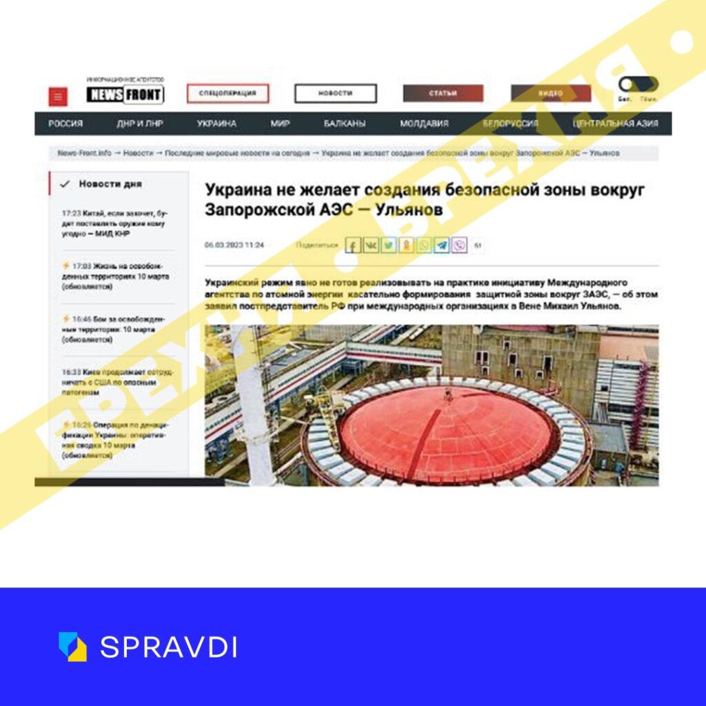 Спростування: «Насправді якраз Україна підтримує всі зусилля міжнародної спільноти щодо демілітаризації захопленої Запорізької АЕС, а рф не припиняє систематично обстрілювати ядерний об’єкт, – підкреслюють у державному Центрі стратегічних комунікацій та інформаційної безпеки. – У серпні 2022-го на засіданні Радбезу ООН закликали негайно припинити всі військові дії поблизу станції, надати місії МАГАТЕ доступ до об’єкта та створити демілітаризовану зону навколо Запорізької АЕС. Після візиту місії Україна підтримала пропозицію щодо демілітаризації захопленого ядерного об’єкта. Однак РФ продовжила ігнорувати міжнародні зусилля щодо захисту ядерної безпеки і навіть зробила спроби легалізувати захоплення української ЗАЕС».