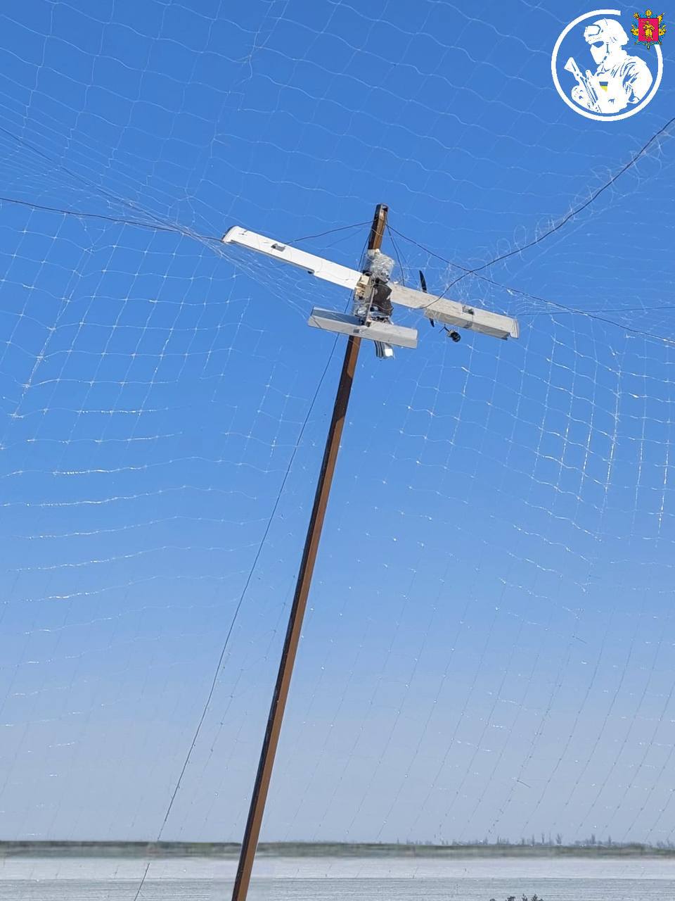 Так, російський ударний БпЛА «Молнія» не зміг дістатися цілі, заплутавшись у сітці.