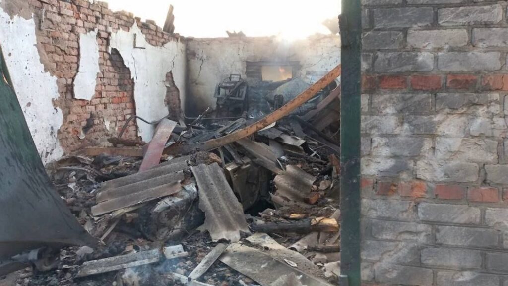 На фермі у Запорізькій області через ворожі обстріли згорів ангар