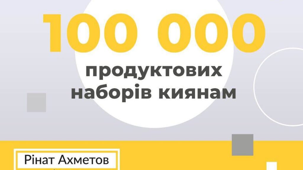 Фонд Рината Ахметова передаст Гуманитарному штабу столицы Украины 100 000 продуктовых наборов выживания. Первые 10 тысяч наборов будут отгружены уже на этой неделе. Их распределят между пенсионерами и женщинами с детьми. Также гуманитарная помощь будет направлена в Донецкую и Запорожскую области, а также другие регионы, где ситуация является наиболее сложной.