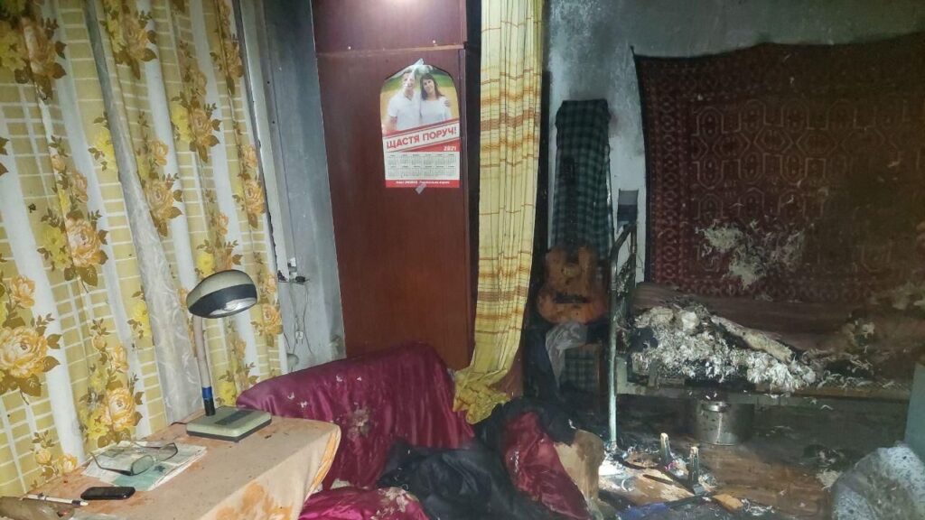 В 00:14 в Службу спасения поступило сообщение о пожаре в пятиэтажном доме по ул. Единства в Пологи. Прибывшие на место происшествия спасатели установили, что на третьем этаже в комнате горят домашние вещи.