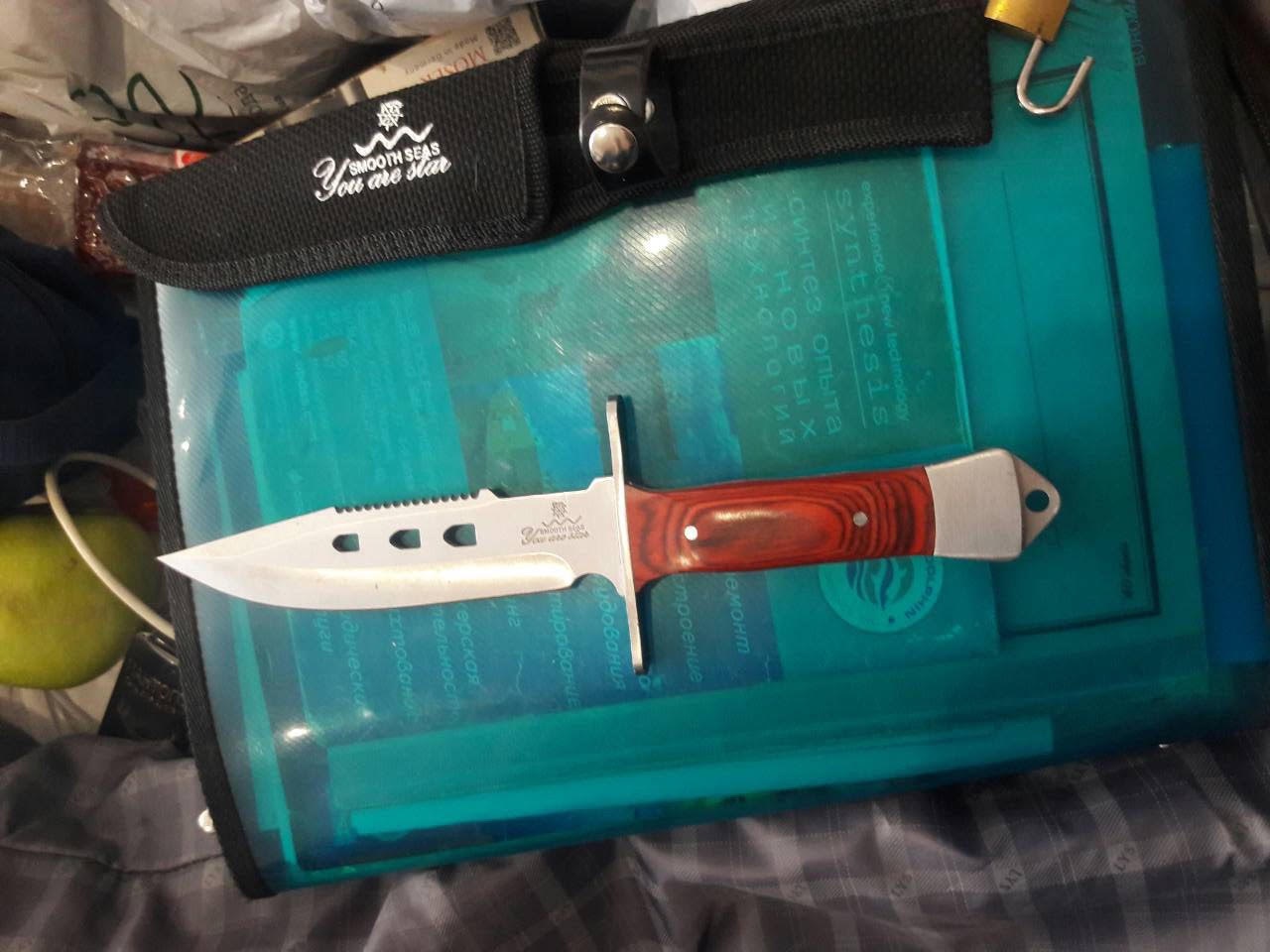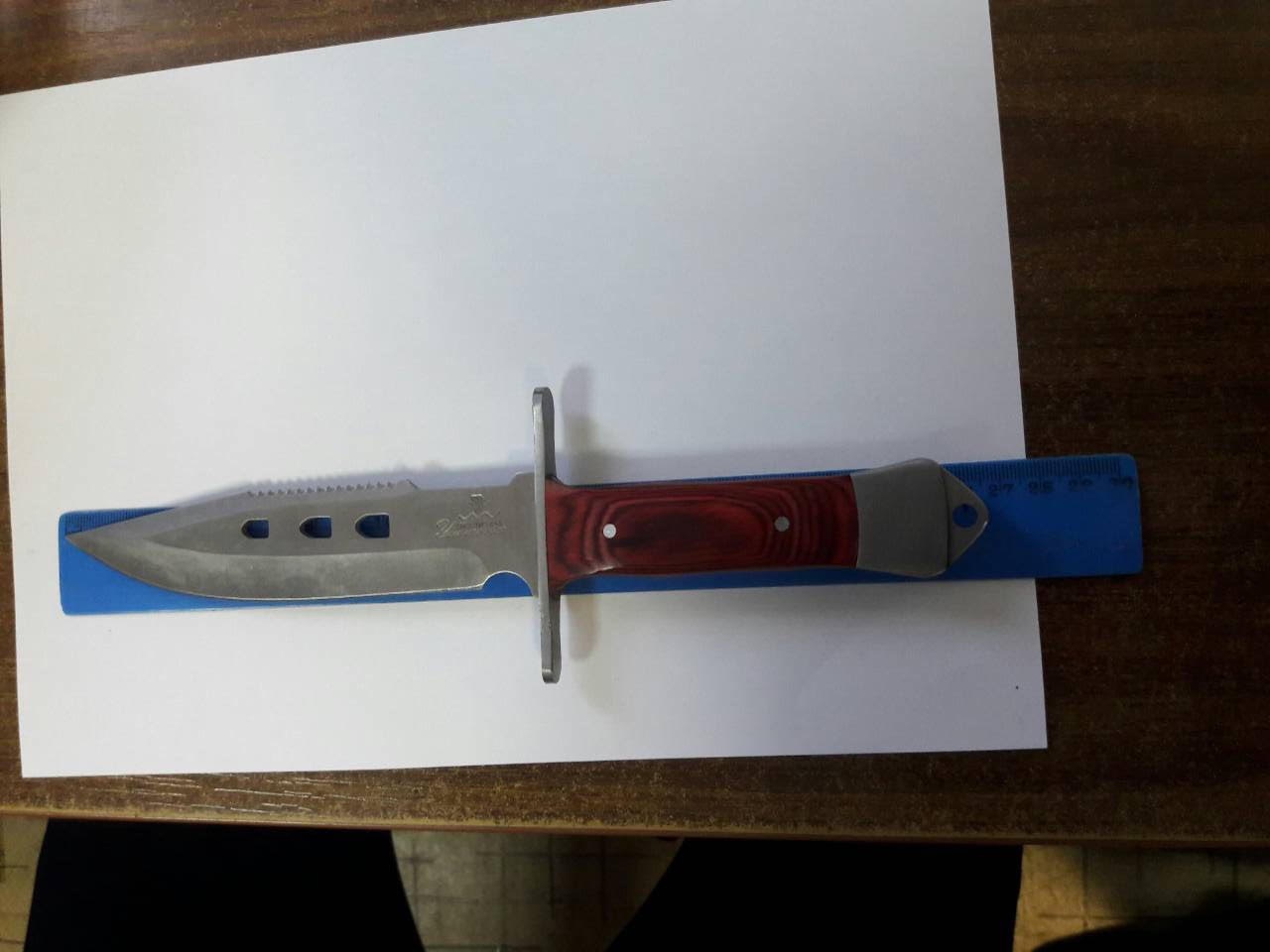 Однако после пересечения «белой полосы» в его сумке работники таможни обнаружили холодное оружие. Нож общей длиной 26,5 см находился в чехле черного цвета среди личных вещей. Клинок ножа имеет скосы, кромку лезвия, зубчатое лезвие на верхней части, заточку нижнего края и 3 технологические отверстия в центре. На части рукояти у клинка выполнен упор для пальца, ниже два держателя для кости.